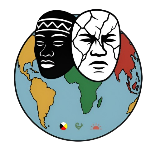 The CIARS Decolonizing Conference logo visually embodies the conference’s commitment to exposing, disrupting ongoing coloniality while advancing resistance and liberatory futures. The two masks symbolize the unmasking of Eurocentric settlerhood and colonial power, alongside enduring practices of resistance, reclamation, and restoration. Together they signify both rupture and continuity. Set against a global backdrop, the image highlights the worldwide reach of coloniality and its entanglement across peoples, and histories. It emphasizes Land as a living source of knowledge, reciprocity, connection, and sovereignty. The global framing underscores the necessity of transnational solidarities and collective efforts to “live well for new futures.” Accompanying symbols—the Medicine Wheel, Sankofa, and the Rising Sun—represent ways of knowing, being, and relating. Together, they gesture toward renewal, possibility, ancestral wisdom, relational and holistic worldviews that challenge dominant epistemologies and ground scholarship and advocacy in community, collectivity, and futurity.